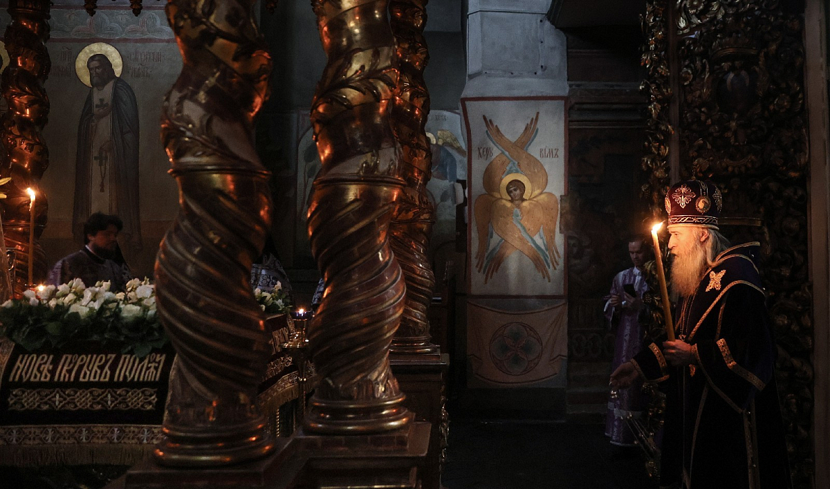 Вечером 14 апреля 2023 года, в канун Великой Субботы, председатель Синодального отдела по монастырям и монашеству, наместник Донского ставропигиального мужского монастыря Москвы митрополит Каширский Феогност совершил утреню с чином погребения Господа нашего Иисуса Христа в Большом соборе Донского монастыря.
