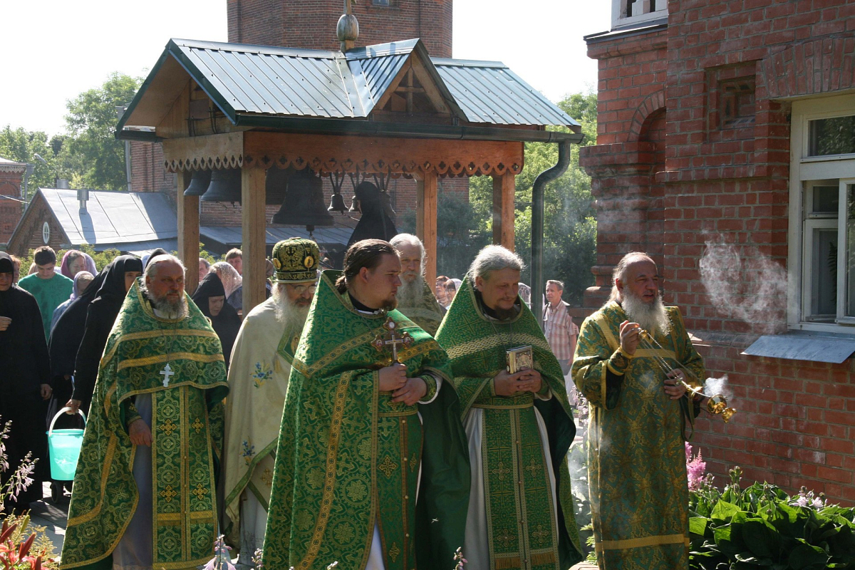 По окончании Литургии вокруг храма под звон колоколов прошел крестный ход.