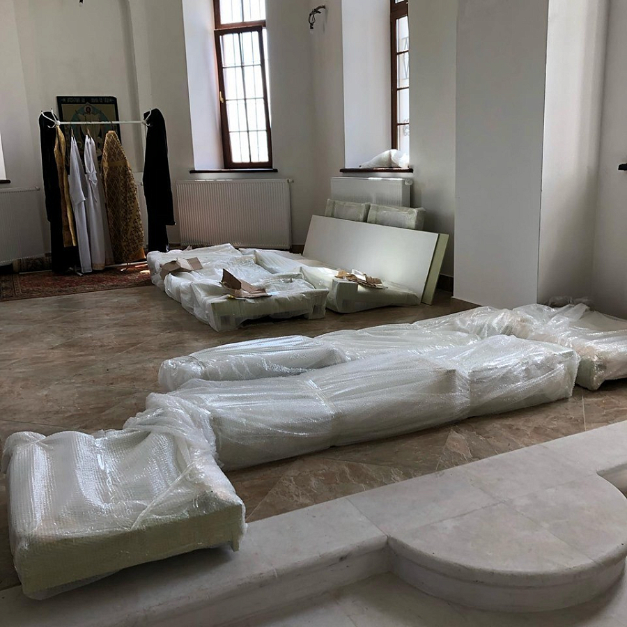 На подворье Новоспасского ставропигиального мужского монастыря в с. Сумарокове Рузского района Московской области в храме в честь Иоанна Предтечи монтируется иконостас. Его все составные части и детали на подворье были доставлены недавно.