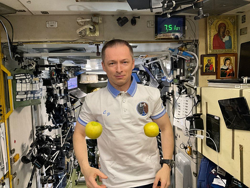 Во время праздничного чаепития состоялся телемост с командиром экипажа транспортного пилотируемого корабля «СОЮЗ МС-27» Сергеем Николаевичем Рыжиковым, который в этот день отмечал на борту Международной космической станции свой день рождения.