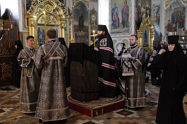 Накануне, в четверг вечером, Его Преосвященство совершил в обители великое повечерие с чтением Великого покаянного канона прп. Андрея Критского.