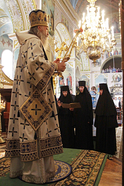 Накануне праздника в обитель по благословению Святейшего Патриарха Московского и всея Руси Кирилла прибыли митрополит Екатеринбургский и Верхотурский Кирилл и председатель Синодального отдела по монастырям и монашеству архиепископ Сергиево-Посадский Феогност с сопровождающими.