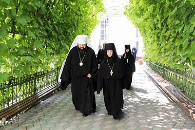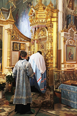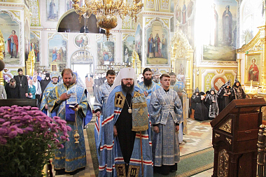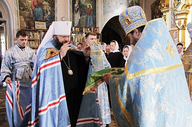 По окончании Литургии перед чудотворным образом Божией Матери «Споручница грешных» был отслужен праздничный молебен, в заключение которого митрополит Исидор передал благословение Святейшего Патриарха Московского и всея Руси Кирилла и поздравил настоятельницу, сестер обители и всех верующих с праздником, подарив на молитвенную память икону сщмч. Серафима Остроумова.