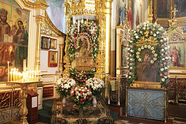 В завершение богослужения состоялся праздничный крестный ход с обнесением иконы Божией Матери «Споручница грешных» Корецкой вокруг храма.