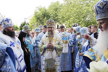 По окончании крестного хода Высокопреосвященнейший митрополит Антоний передал благословение Блаженнейшего митрополита Киевского и всея Украины Онуфрия и поздравил всех собравшихся на торжество с настоящим праздником.