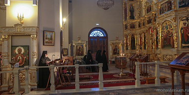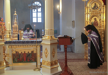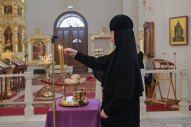 В Крестовоздвиженском храме монастыря за всенощной молились настоятельница обители игумения Екатерина (Чайникова) с сестрами, прихожане и гости монастыря.