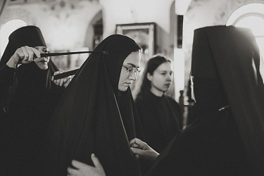 27 марта 2026 года по благословению Святейшего Патриарха Московского и всея Руси Кирилла в Крестовоздвиженском Иерусалимском ставропигиальном женском монастыре шесть сестер обители приняли иноческий постриг.