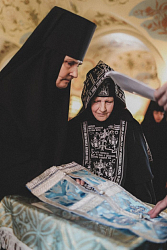 Богослужение прошло в храме Иерусалимской иконы Божией Матери. Постриг совершил клирик обители, иеромонах Дионисий (Локтаев).