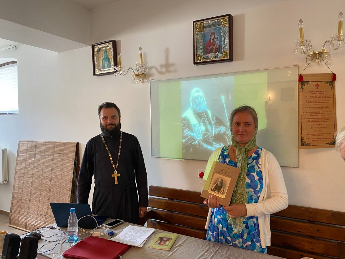 Книгу представила ее автор Мария Вячеславовна, историк, краевед. В своем выступлении она осветила биографию Патриарха Тихона от его рождения до блаженной кончины, 100-летие которой в этом году празднует Святая Церковь.