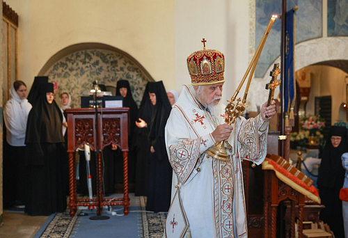 Позднюю Божественную литургию в Покровском соборе обители возглавил епископ Верейский Пантелеимон, викарий Святейшего Патриарха Московского и всея Руси.