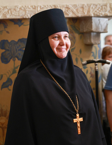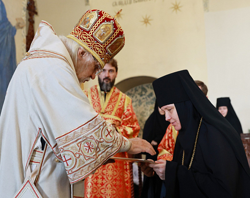 Епископ Пантелеимон зачитал Патриаршее поздравление настоятельнице Марфо-Мариинской обители милосердия игумении Елисавете с днем тезоименитства.