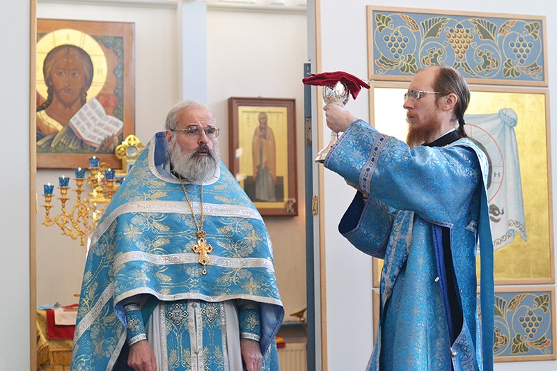 25 февраля 2020 года, в день празднования Иверской иконе Божией Матери и памяти свт. Алексия, митрополита Киевского, Московского и всея Руси, чудотворца, Божественную литургию в храме святых праведных Марфы и Марии ставропигиального женского монастыря Марфо-Мариинская обитель милосердия совершил клирик обители протоиерей Александр Дубинин.
