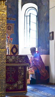 Архипастырю сослужили протоиерей Николай Кречетов, благочинный Москворецкого округа и настоятель храма Преображения Господня на Болвановке, и клирики обители: протоиерей Александр Дубинин, иерей Тихон Кречетов и иерей Дионисий Денисов.