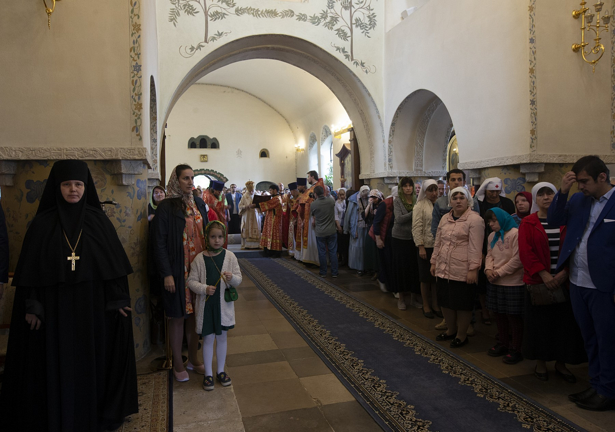 За богослужением молились настоятельница монастыря игумения Елисавета (Позднякова) с сестрами, сотрудники подразделений Марфо-Мариинской обители милосердия, прихожане и гости обители и среди них праправнук императора Александра III Павел Куликовский-Романов – всего около 1000 человек.