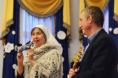 На концерт также были приглашены сотрудники обители, ее подопечные и друзья добровольцев. Так, старшая патронажная сестра Марфо-Мариинского сестричества Любовь Геннадьевна Митичкина вместе с супругом Сергеем Юрьевичем исполнили добрые и неимоверно искренние бардовские песни, поделившись со всеми гостями яркими и радостными воспоминаниями ушедшего года.