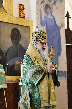 17 июня 2019 года, в день Святого Духа и памяти святых праведных Марфы и Марии, сестер праведного Лазаря Четверодневного, Божественную литургию в Покровском соборе Марфо-Мариинской обители милосердия совершил епископ Орехово-Зуевский Пантелеимон, председатель Синодального отдела по церковной благотворительности и социальному служению.