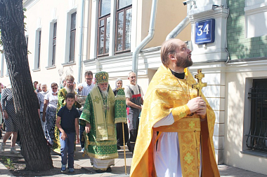 Архипастырю сослужили протоиерей Владимир Воробьев, иерей Михаил Асмус и клирики Марфо-Мариинской обители: старший священник иерей Тихон Кречетов, иереи Дионисий Денисов, Игорь Блинов и Александр Ильинский.
