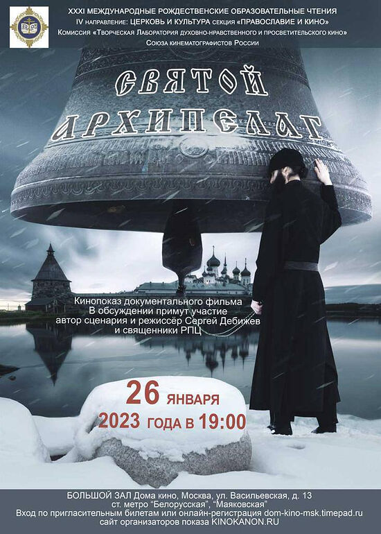 26 января 2023 года в рамках Рождественских чтений в Большом зале Дома кино в Москве покажут фильм о Спасо-Преображенском Соловецком ставропигиальном мужском монастыре «Святой Архипелаг».