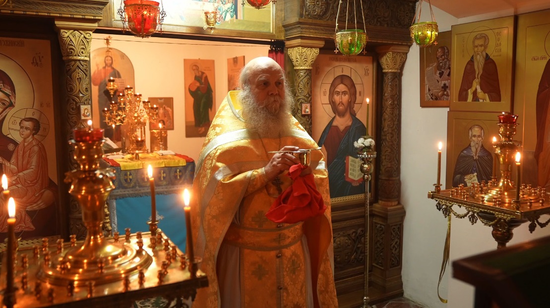 Его Преподобию помогал штатный клирик монастыря иеродиакон Николай (Тищенко).