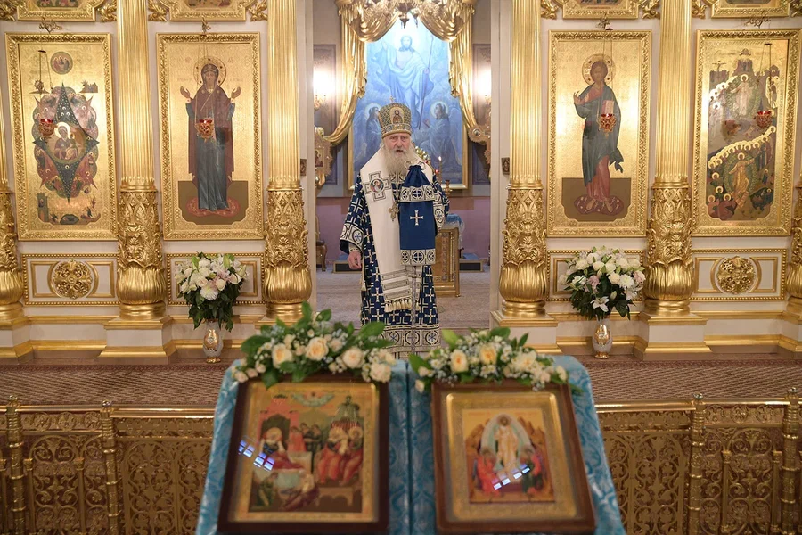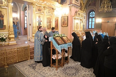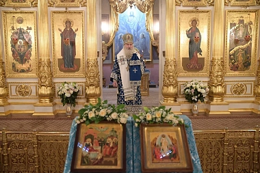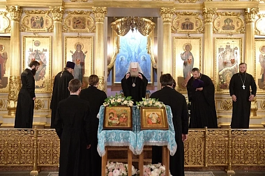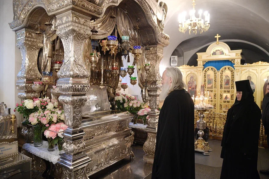 По прибытии в обитель митрополит Феогност поклонился честным мощам святой праведной блаженной Матроны Московской.