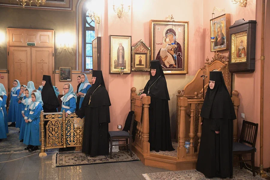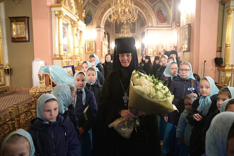 За богослужением молились настоятельница игумения Феофания (Мискина) с сестрами, настоятельница женского монастыря святых жен Мироносиц города Бобруйска Республики Беларусь игумения Параскева (Ельская), воспитанницы детского приюта при Покровском монастыре и прихожане.
