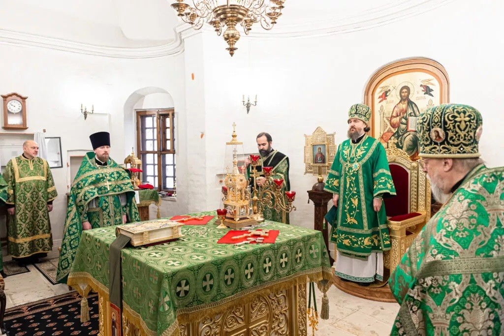 Его Высокопреосвященству сослужили клирики Новодевичьего монастыря во главе с духовником архимандритом Кириллом (Семеновым). За богослужением молились настоятельница игумения Маргарита (Феоктистова), сестры обители и прихожане.