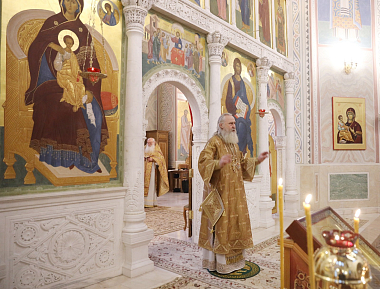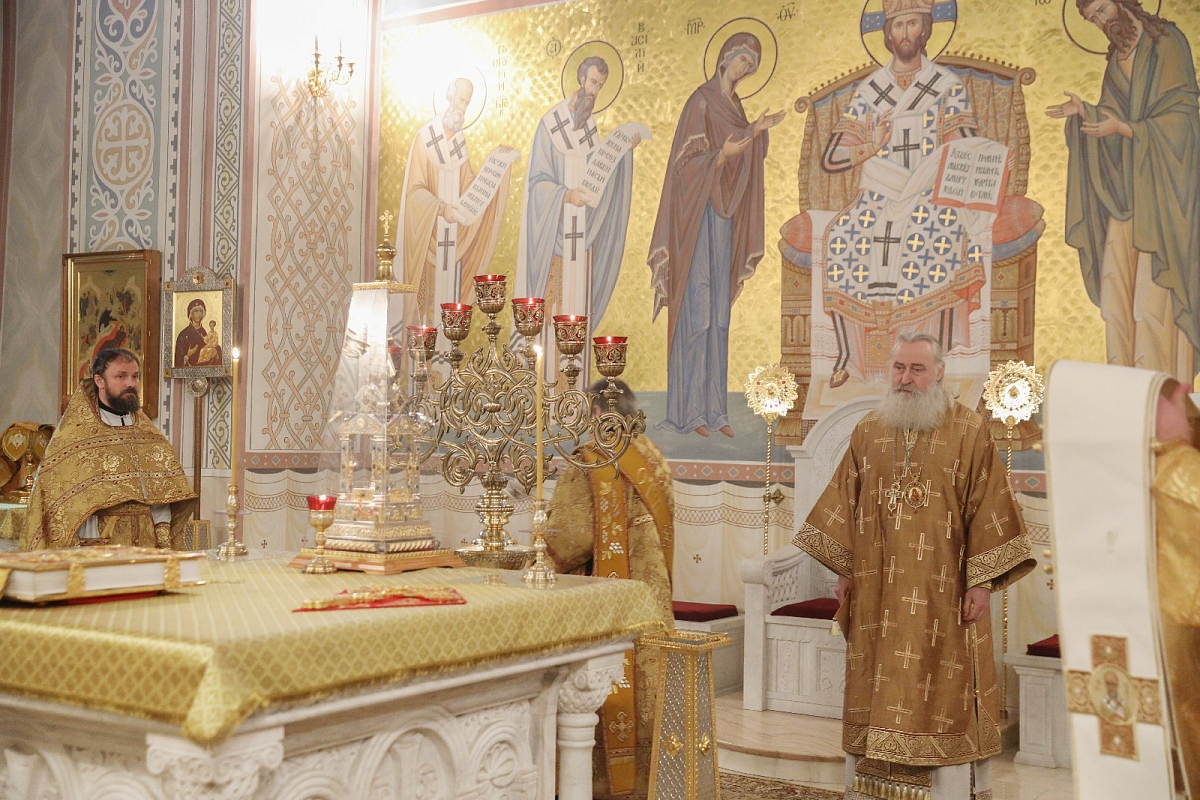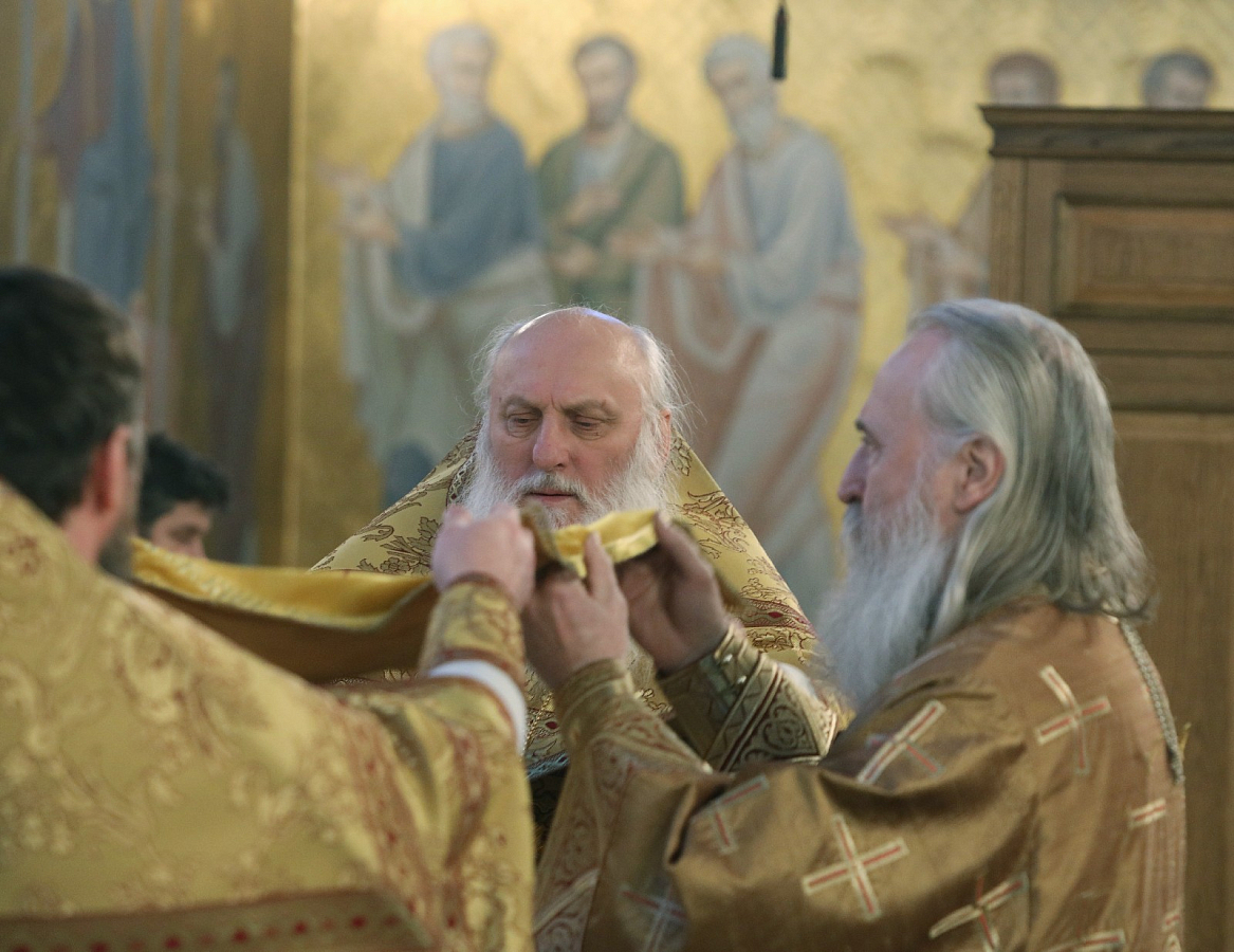 Его Высокопреосвященству сослужило духовенство обители.