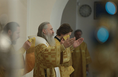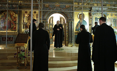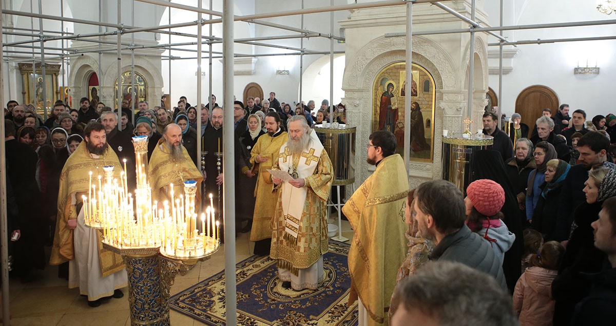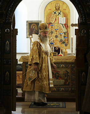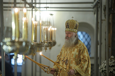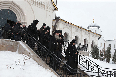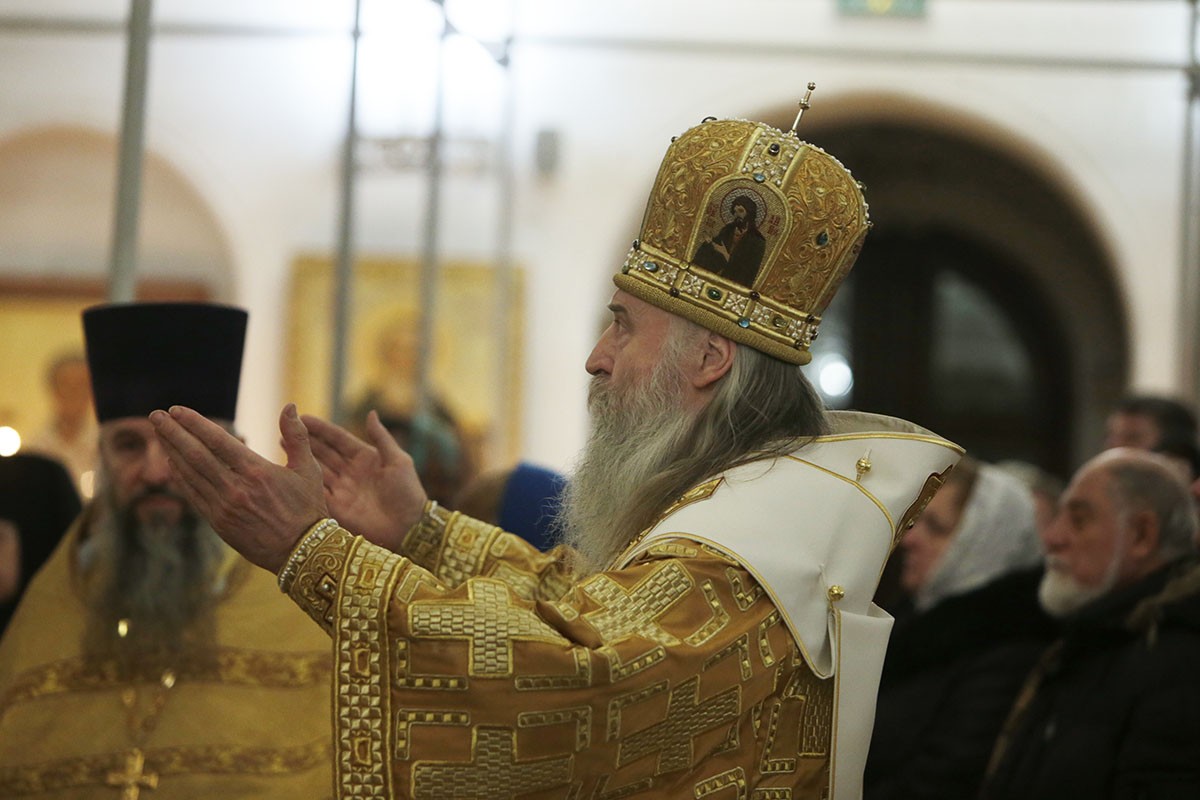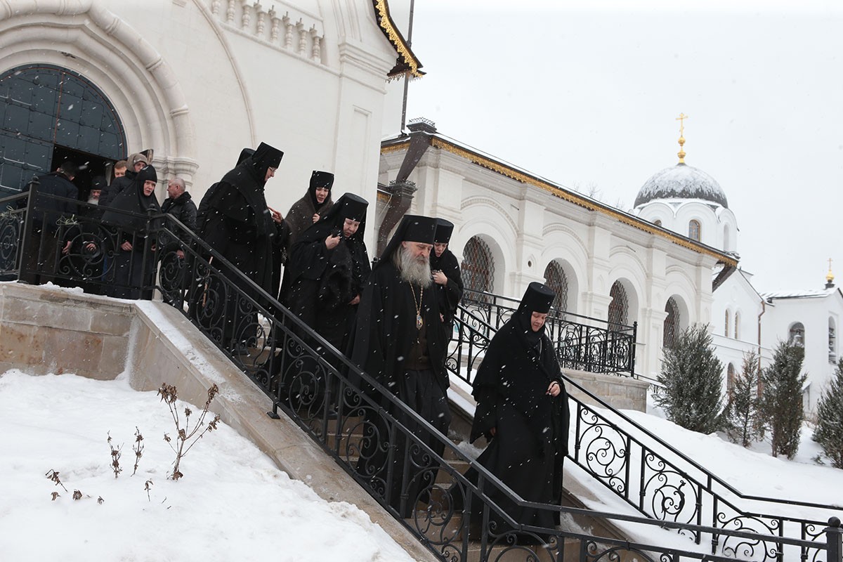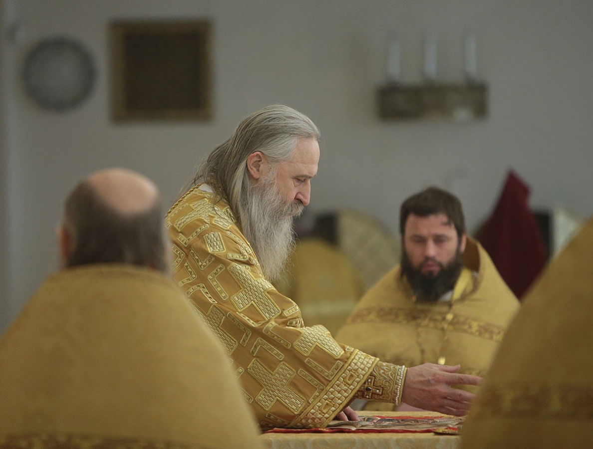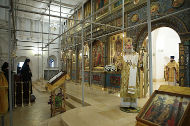 В монастырском соборе Рождества Пресвятой Богородицы Его Высокопреосвященству сослужило духовенство обители.