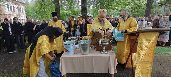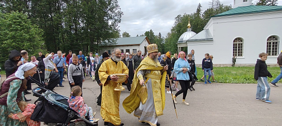 Затем в Успенском соборе монастыря была совершена поздняя Литургия, которую возглавил наместник обители архимандрит Сергий (Воронков). По окончании Литургии братия и многочисленные паломники направились в скит, где был отслужен водосвятный молебен. Все помещения скита, где идут восстановительные работы, окропили освященной водой.