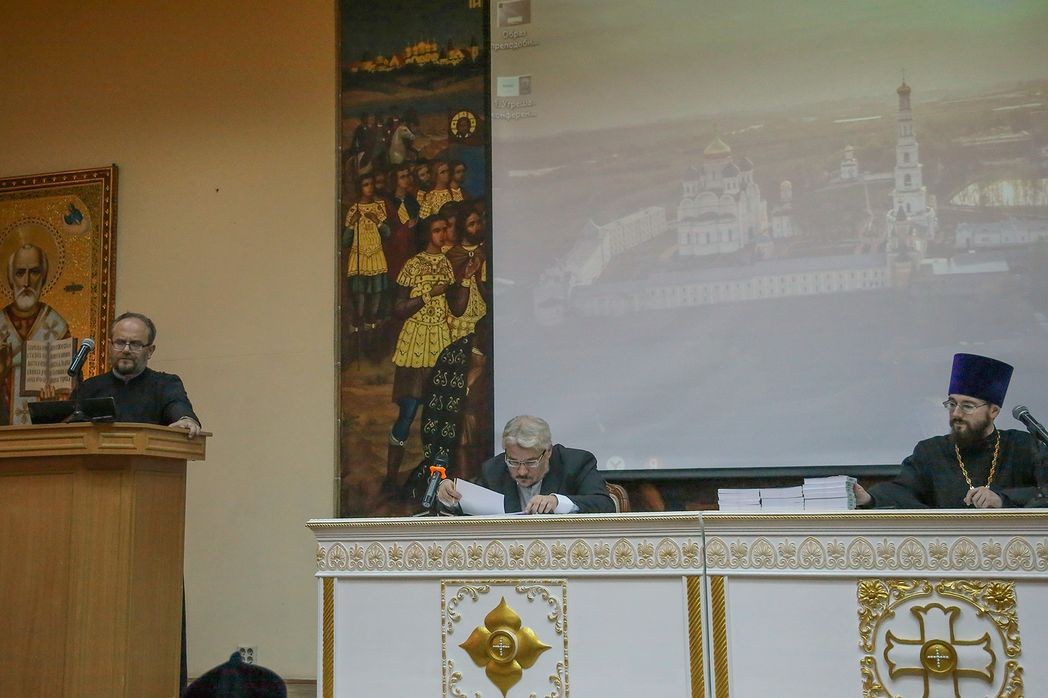 В начале конференции было зачитано приветственное слово ректора Николо-Угрешской семинарии, наместника Николо-Угрешского монастыря иеромонаха Мефодия, особо подчеркнувшего примечательность того факта, что нынешняя конференция проходит в стенах Николо-Угрешской обители, история созидания которой также непосредственно связана с именем преподобного Сергия.