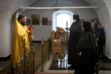 По окончании Литургии игумен Дионисий огласил поздравительный адрес Его Святейшества о награждении орденом святой преподобномученицы великой княгини Елисаветы Феодоровны III по случаю юбилея матушки игумении Антонии.
