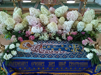 В сам день праздника в монастыре были отслужены две Божественные литургии: ранняя ночная в храме Успения Божией Матери для насельниц обители и поздняя в Никольском храме для паломников и гостей.