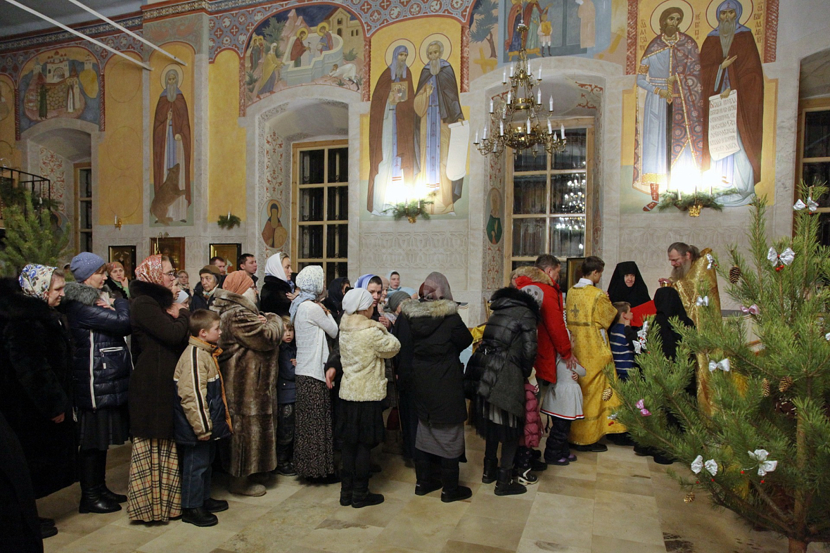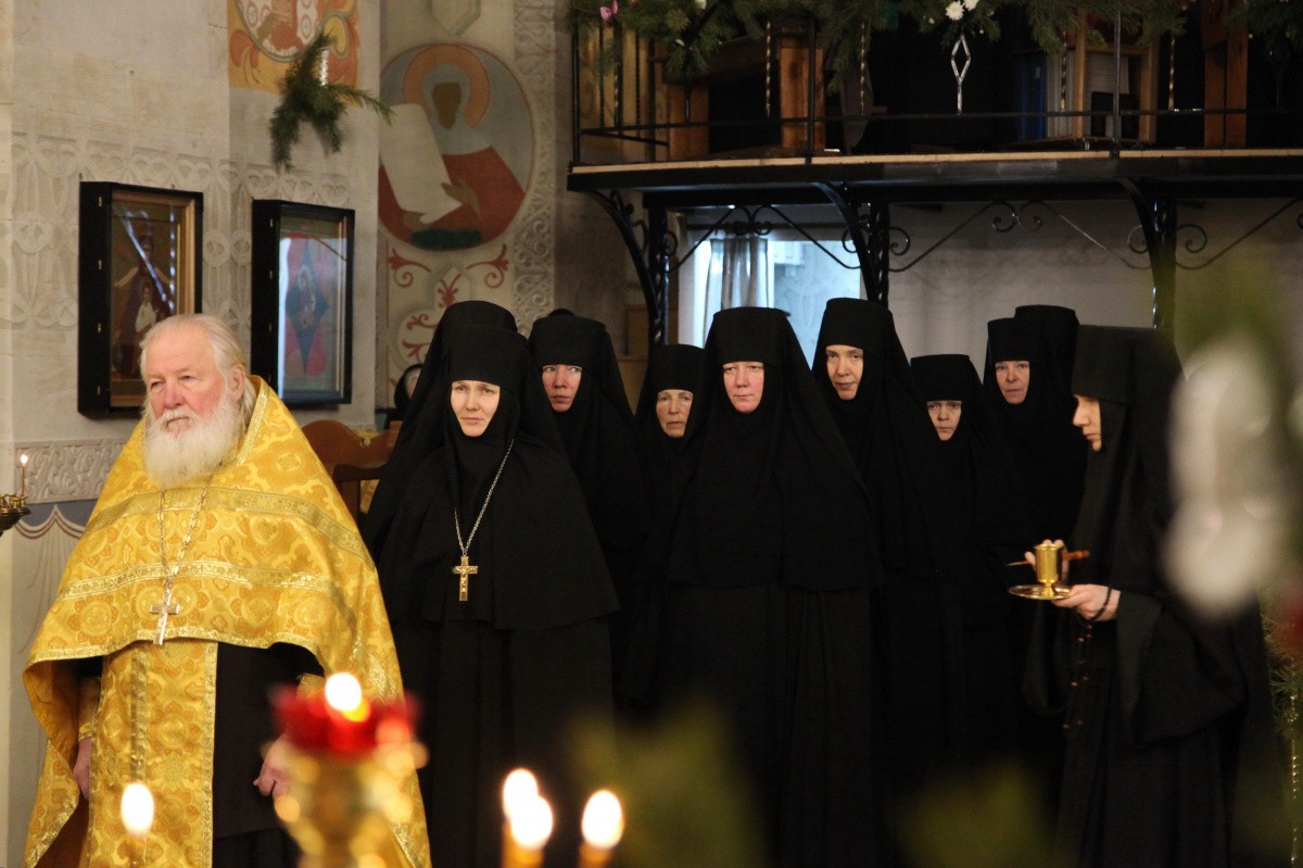 Рождественское богослужение в Никольском храме обители возглавил клирик Никольского монастыря протоиерей Владимир Постников, которому сослужили клирики Заиконоспасского ставропигиального мужского монастыря Москвы иерей Виталий Родин и иеродиакон Савва (Буханцев).