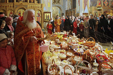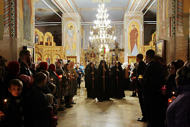 За пасхальной утреней были прочитаны слово святителя Иоанна Златоуста и Пасхальное послание Святейшего Патриарха Московского и всея Руси Кирилла.