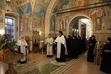 Накануне в обители состоялось торжественное всенощное бдение, которое возглавил клирик Никольского монастыря протоиерей Владимир Постников, ему сослужил клирик Заиконоспасского ставропигиального мужского монастыря города Москвы иеродиакон Ираклий (Левковский).