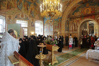 За богослужением молились настоятельница обители игумения Неонилла (Фролова) с сестрами монастыря и воспитанницами структурного подразделения «Служба помощи семье и детям», прихожане и паломники обители.