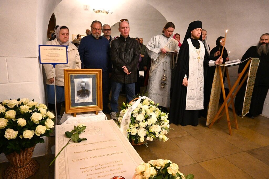 По благословению наместника обители митрополита Воскресенского Григория панихиду в храме преподобного Романа Сладкопевца – усыпальнице бояр Романовых, где покоится великий князь Сергей Александрович, совершил иеромонах Лаврентий (Сиренко).