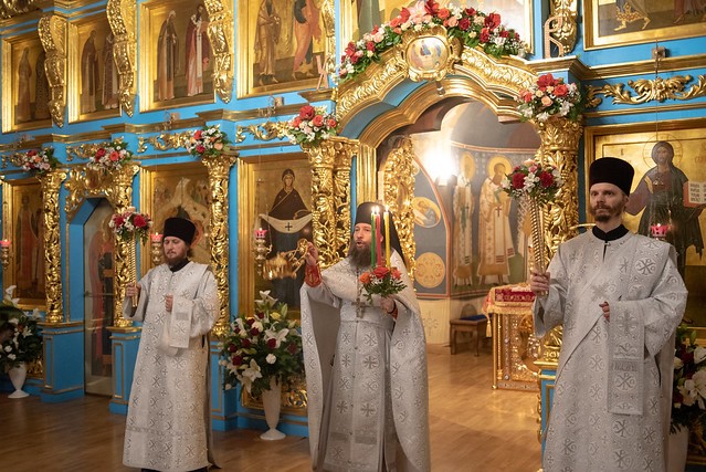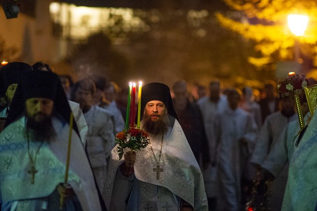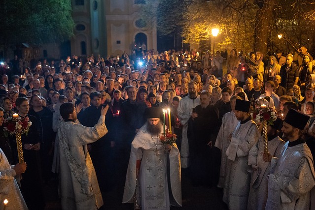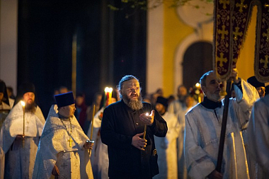 В полночь пение стихиры «Воскресение Твое, Христе Спасе» возвестило о наступлении Воскресения Христова. С зажженными свечами верующие прошли крестным ходом, после которого насельники монастыря в священном сане приветствовали боголюбивую паству вечно живыми и радостными словами: «Христос воскресе!»