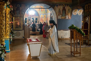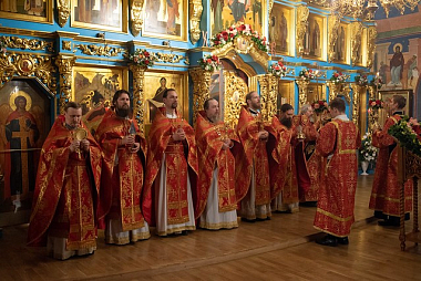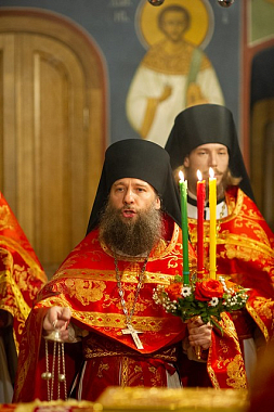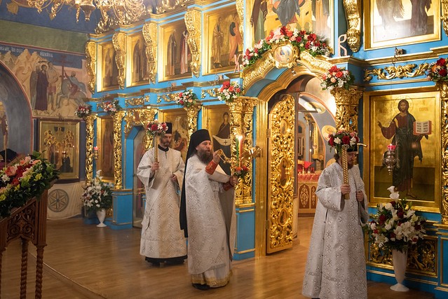 По запричастном стихе было зачитано Пасхальное послание Святейшего Патриарха Московского и всея Руси Кирилла архипастырям, пастырям, диаконам, монашествующим и всем верным чадам Русской Православной Церкви.