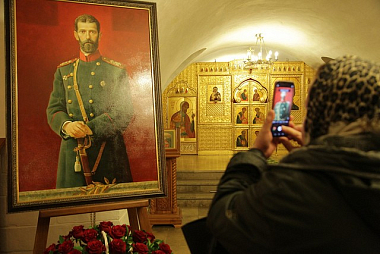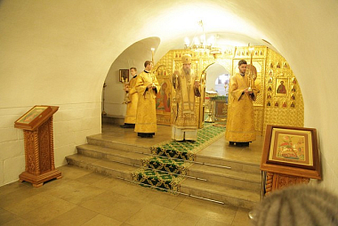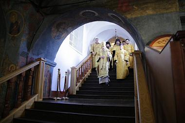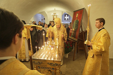 По окончании Литургии наместник Новоспасского монастыря отслужил в храме прп. Романа Сладкопевца в усыпальнице бояр Романовых панихиду по Великому князю.