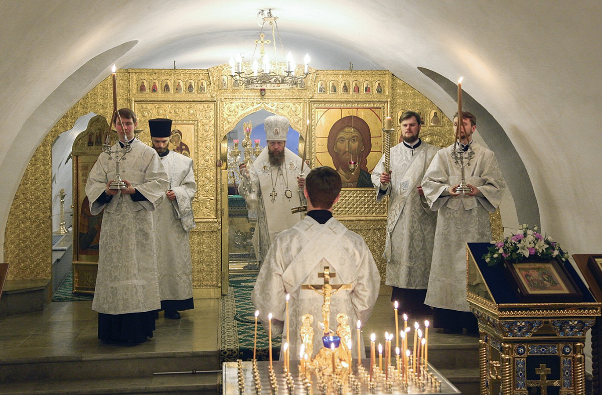 В этот день Божественную литургию в храме Прп. Романа Сладкопевца усыпальницы бояр Романовых возглавил наместник Новоспасской обители епископ Воскресенский Савва.