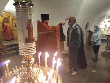 По окончании молебна Его Высокопреосвященство пожелал всем здравия и предстательства святого цесаревича Алексия, пригласив всех подходить к иконе святого и просить о здравии.