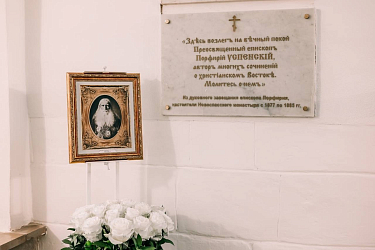 Перед началом заседания в монастырском храме преподобного Романа Сладкопевца (усыпальница бояр Романовых) была совершена лития у места захоронения епископа Порфирия (Успенского). Владыка отошел ко Господу 19 апреля 1885 года, в возрасте 81 года. Согласно его желанию на мраморной плите выбита надпись: «Здесь возлег на вечный покой преосвященный Порфирий Успенский, автор многих сочинений о христианском Востоке. Молитесь о нем».