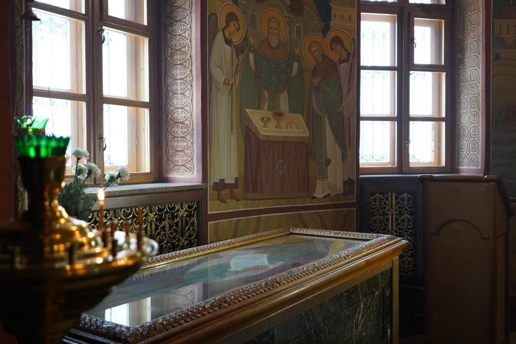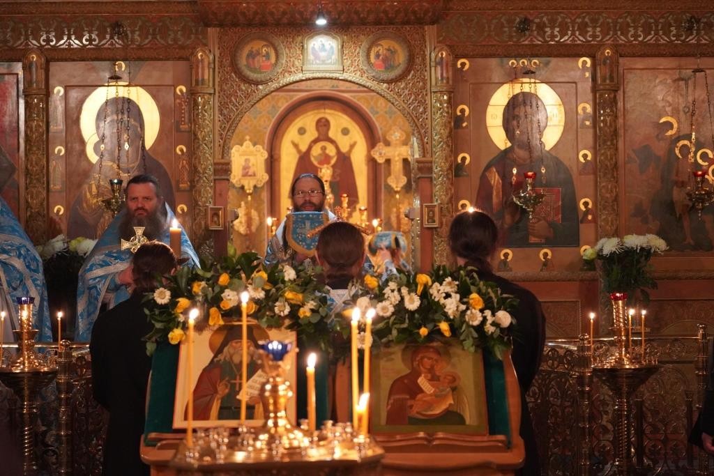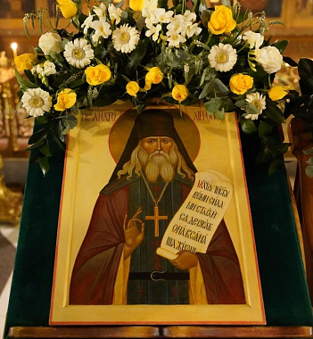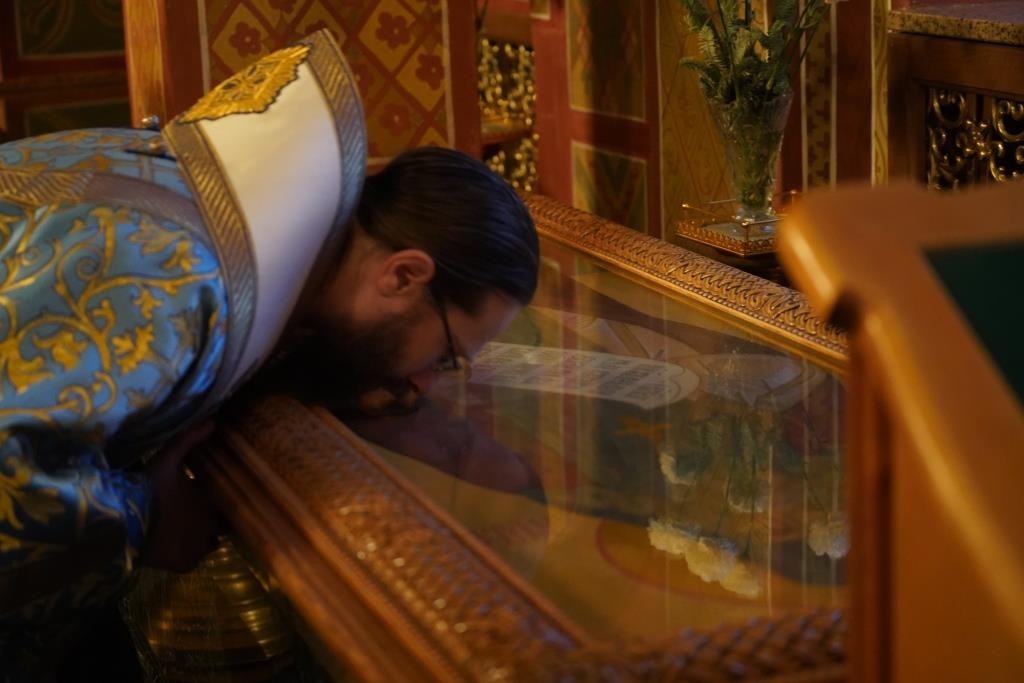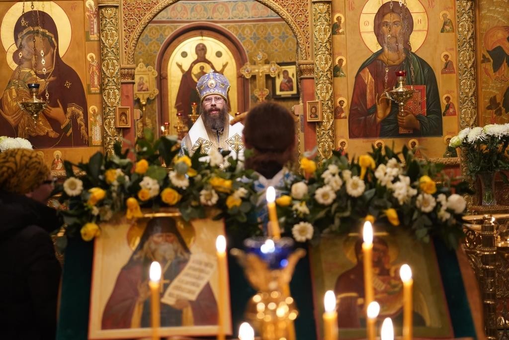 Раннюю Литургию во Владимирском храме, где находится рака с мощами прп. Анатолия, возглавил наместник монастыря епископ Можайский Леонид, викарий Святейшего Патриарха Московского и всея Руси.
