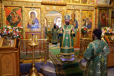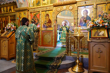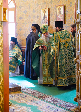 Богослужение во Владимирском храме возглавил наместник монастыря епископ Можайский Леонид в сослужении братии в священном сане.