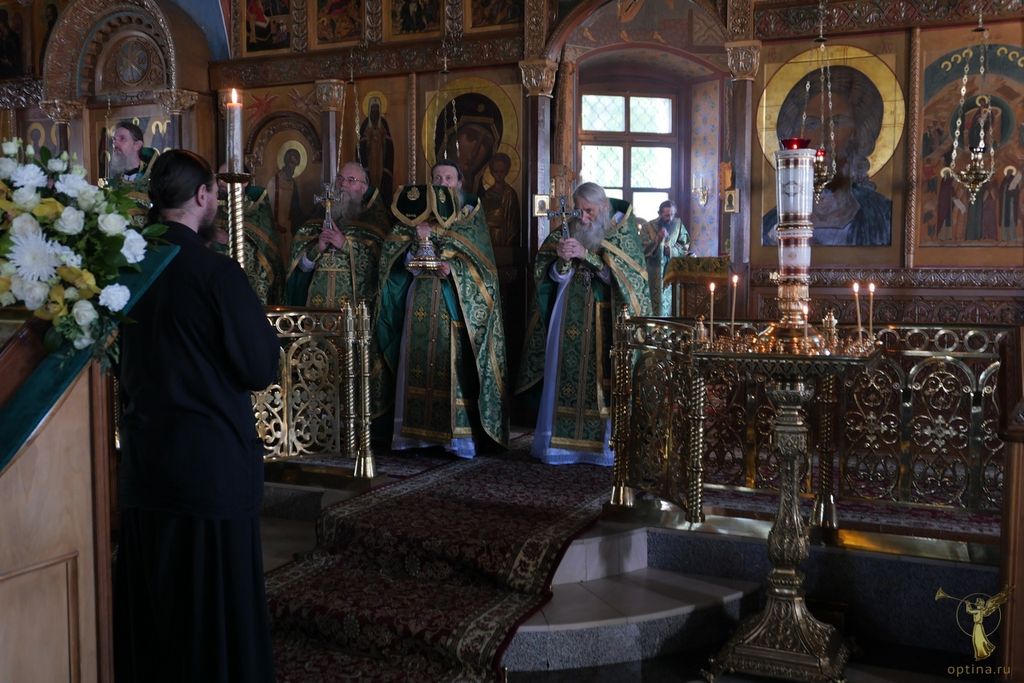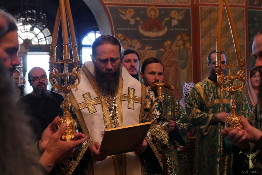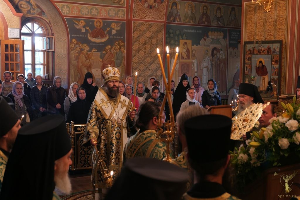 Праздничные богослужения во Владимирском храме Оптиной пустыни возглавил наместник монастыря епископ Можайский Леонид в сослужении настоятеля Московского подворья монастыря Оптина пустынь в Ясеневе, пресс-секретаря Синодального отдела по монастырям и монашеству архимандрита Мелхиседека (Артюхина) и братии в священном сане.