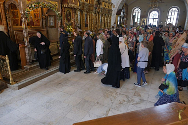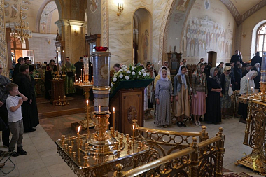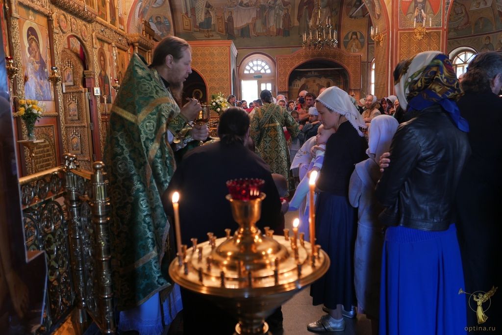 В сам праздничный день Божественная литургии служилась в пяти храмах, включая скитской.