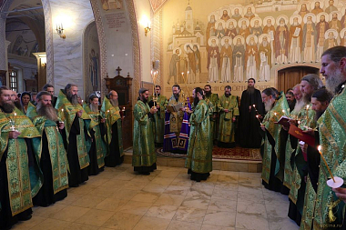 Накануне всенощное бдение совершалось сразу в трех самых больших храмах обители.