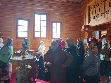 В ходе экскурсии был устроен концерт колокольного звона на колокольне деревянного храма в честь иконы Божией Матери «Неувядаемый цвет». Колокольню каменного храма предстоит еще восстановить. В настоящее время ведется работа по созданию проекта разрушенной после Великой Отечественной войны колокольни.