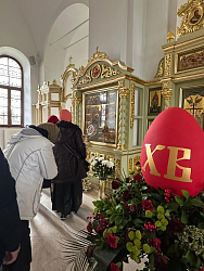 Отец Сергий всем преподнес в подарок пасхальное восковое красное яичко и пожелал всем, чтобы жизни были озарены светом Христова Воскресения. Не так давно на подворье запустили свечную мастерскую. И это небольшой, но очень радостный и приятный сувенир, который каждый бережно смог увезти на память, тоже изготовлен непосредственно на подворье в Сумарокове.